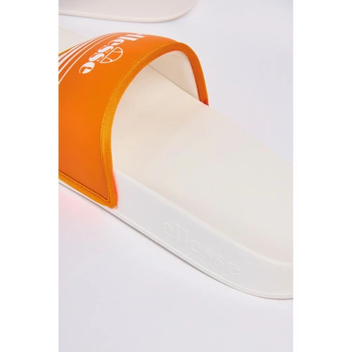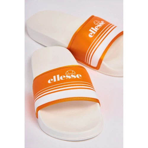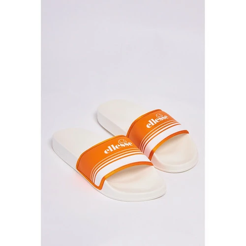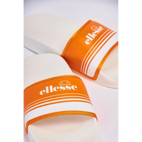 Claquettes Ellesse blanches Inscription Ellesse Bride large rembourrée orange Semelle épaisse surélevée Bout rond