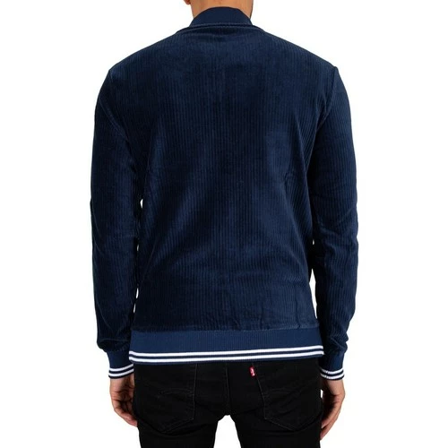 Le haut de survêtement Monzo d’Ellesse est livré avec des manches à bandes imprimées, avec un col et des poignets côtelés. Cette veste côtelée est dotée d’une fermeture zippée avec un zip en métal de marque et de la BCI Better Cotton Initiative. De couleur bleu marine, cette veste de survêtement comporte un logo brodé sur la poitrine gauche.