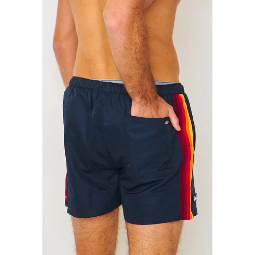 Short Ellesse bleu Bandes oranges et rouges Élastique avec cordon de serrage Poches latérales Poche arrière Patchs Ellesse Composition : 100% Polyester