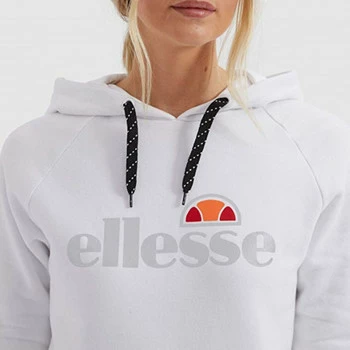 Nouveau sweat à capuche ellesse blanc pour femme arpino SRE08363 ellesse Ce nouveau sweat ellesse est composé d’une capuche avec un lien de serrage noir et réfléchissant Imprimé refléchissant au niveau de la poitrine Coupe classique, prenez votre taille habituelle 85% cotton 15% polyester
