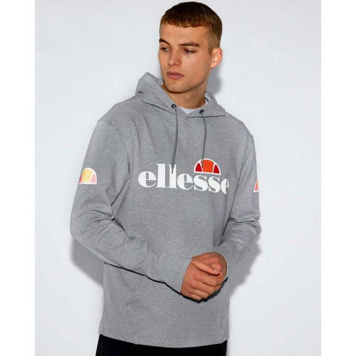 Nouveau sweat ellesse Sterpeto grise Sweat homme à capuche avec lien de serrage Imprimé ellesse réflechissnat au niveau de la poitrine Coupe classique, prenez votre taille habituelle 55% coton 37% viscose 8% elasthane